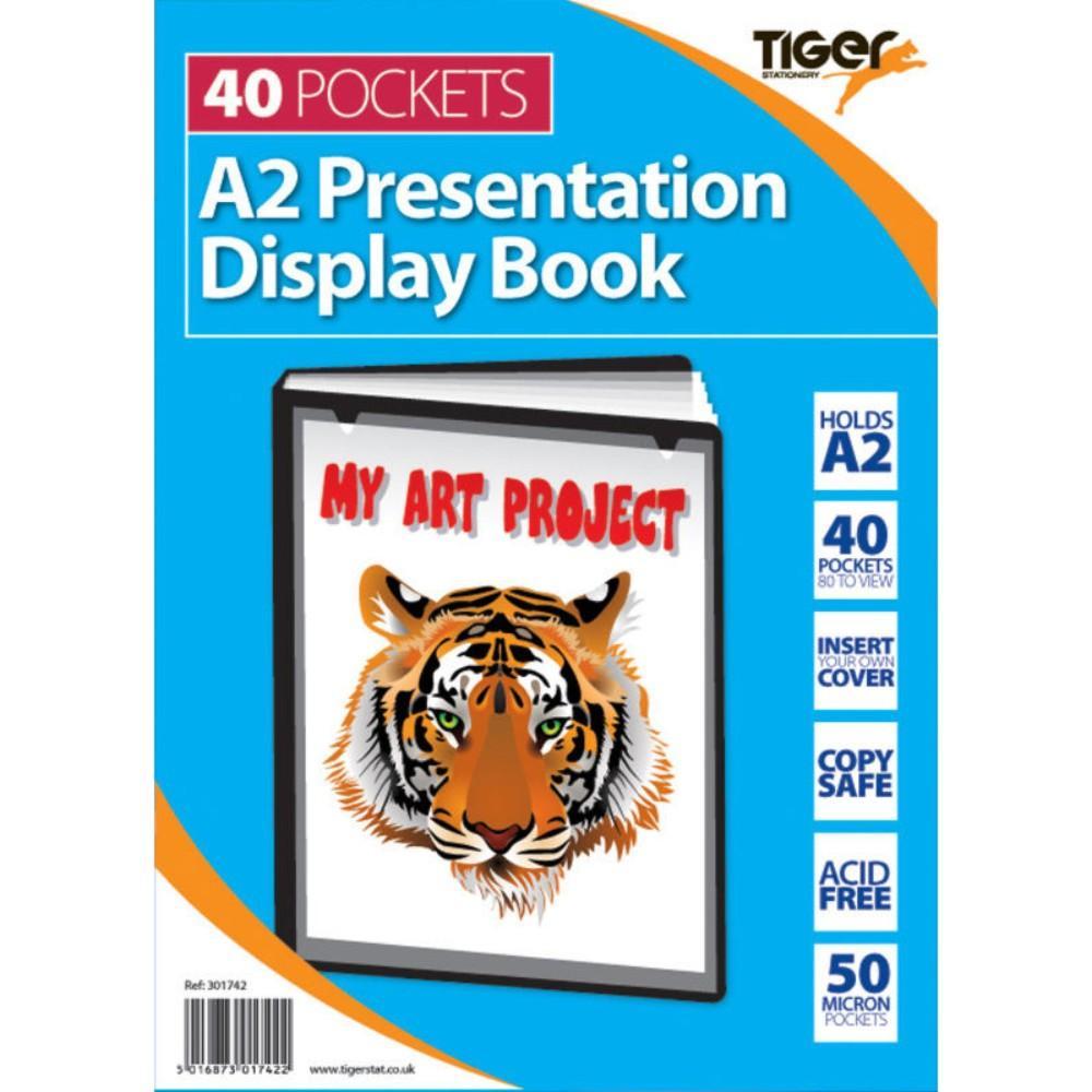 40 copysafe pockets (80 sides to view), removeable front sheet for personalised cover. 150 micron clear sheet + 1mm cover/50 mic pockets. Pockets in all Tiger display books are made from virgin polypropylene-without slip coating which means acid free environment for safe storage. Black for professional presentations.