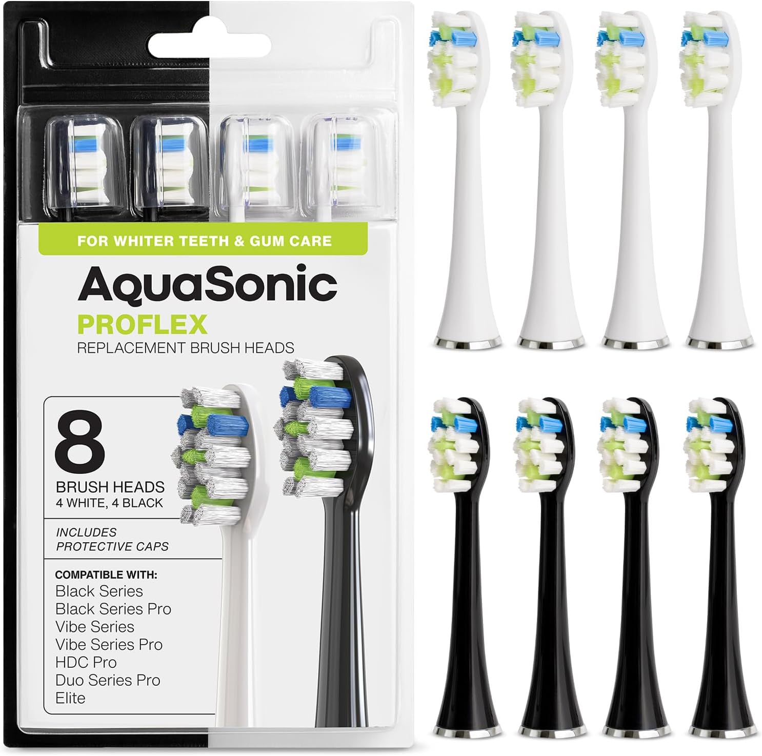AquaSonic Duo PRO 8-Pack Replacement Brush Heads - Upgraded Proflex Brush Heads for Improved Plaque Removal - Genuine AquaSonic