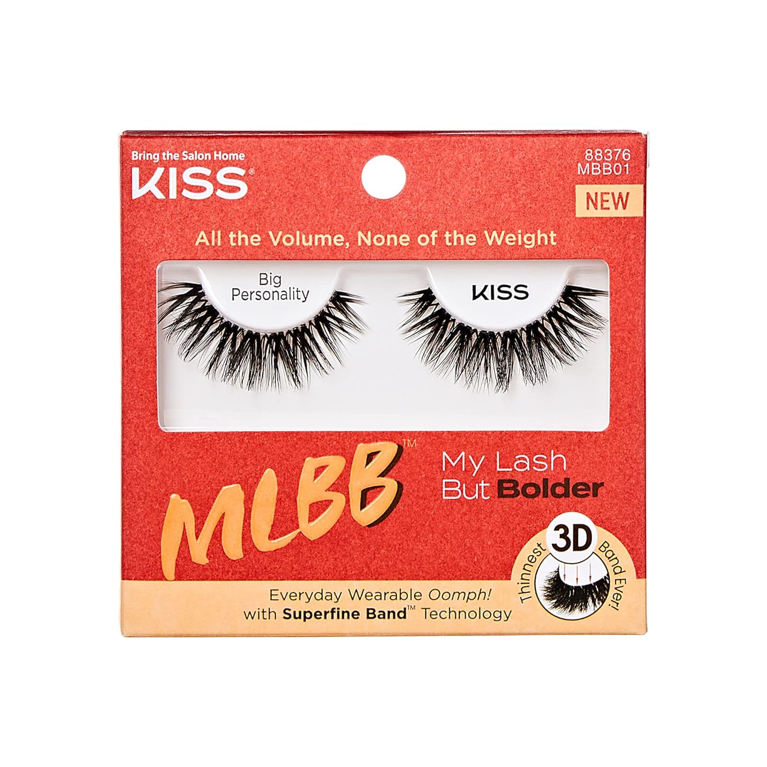 KISS My Lash But Bolder, False Eyelashes, Big Personality', 14 mm, Includes 1 Pair, Contact Lens Friendly, Easy to Apply, Reusable Strip Lashes, Glue-On