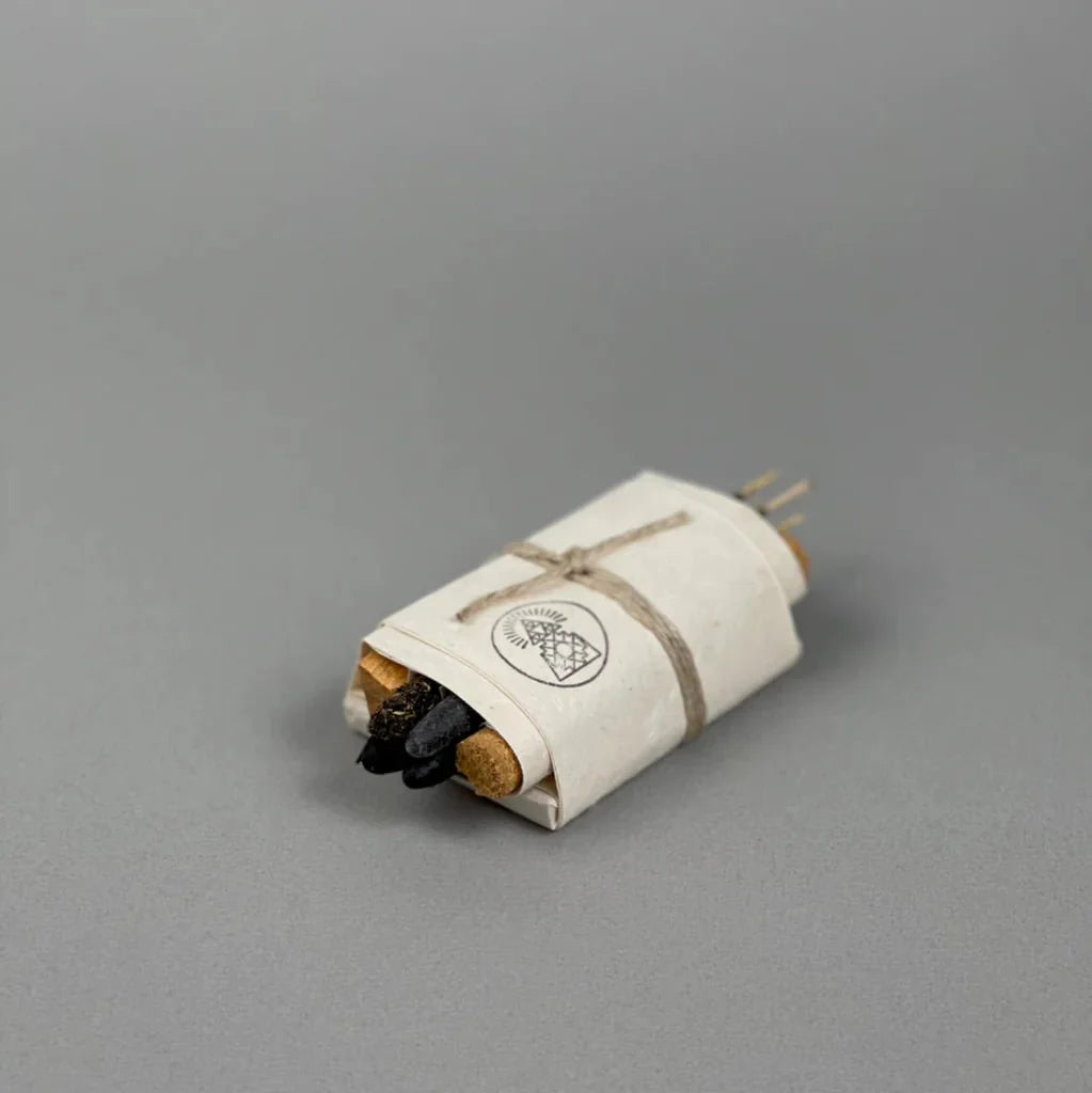 Bundled with Breu resin, Palo Santo, White Sage, Chacrona & Jagube artisanal incense sticks. Hand pressed Palo Santo incense and Palo Santo Wood in natura.