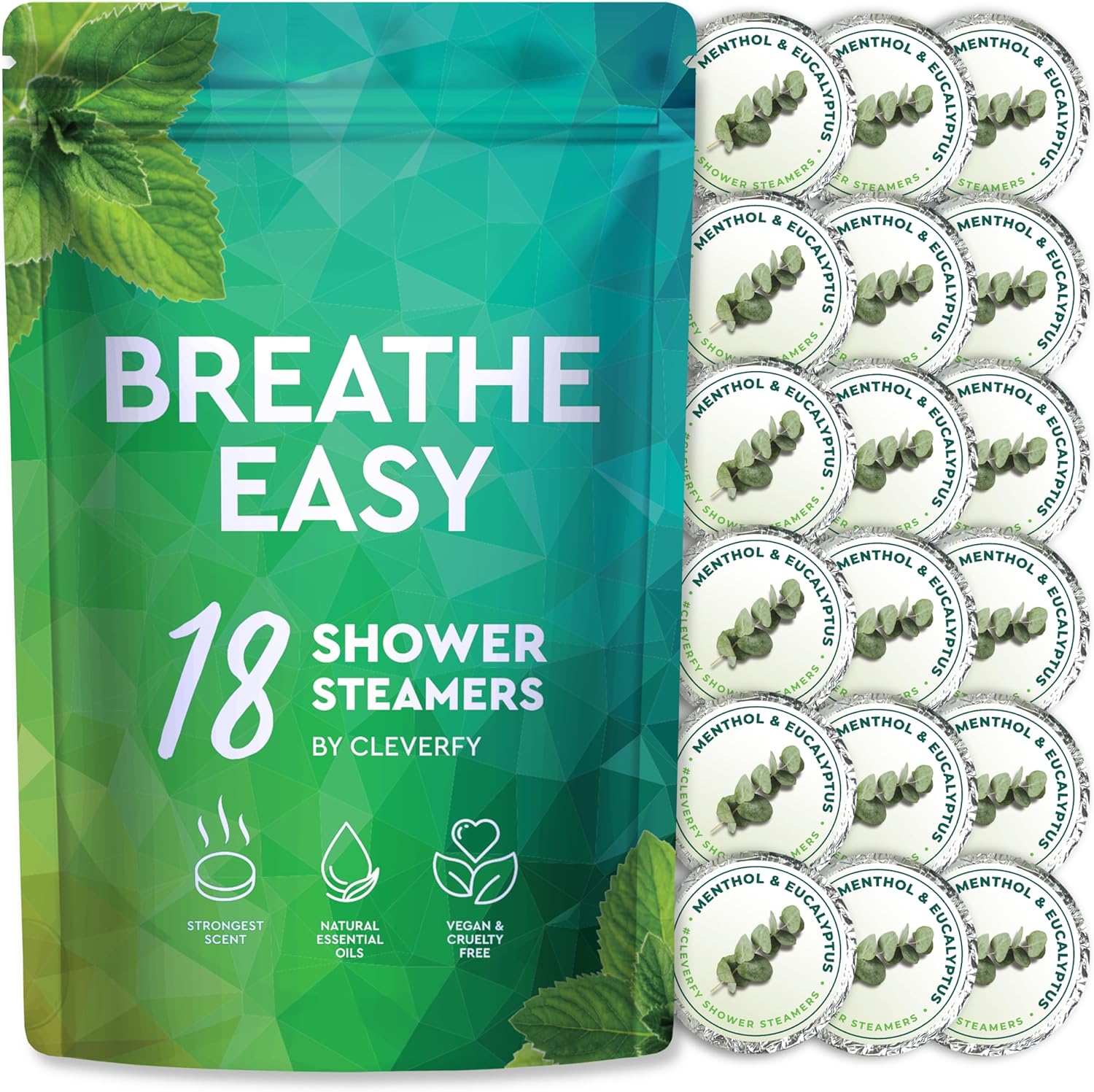 Cleverfy Shower Steamers Aromatherapy - 18 Pack of Menthol & Eucalyptus Shower Bombs with Essential Oils for Relaxation and Nasal Congestion. Birthday Gifts for Women and Valentines Day Gifts for Her