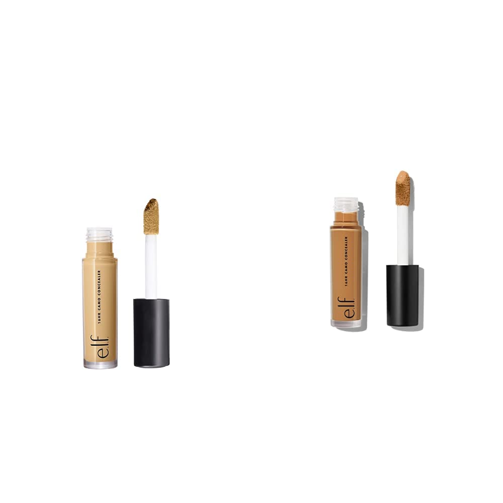 e.l.f 16HR Camo Concealer, Full Coverage & Highly Pigmented, Matte Finish, Tan Sand, 0.203 Fl Oz and e.l.f. 16HR Camo Concealer, Full Coverage & Highly Pigmented, Matte Finish, Deep Olive, 0.203 Fl