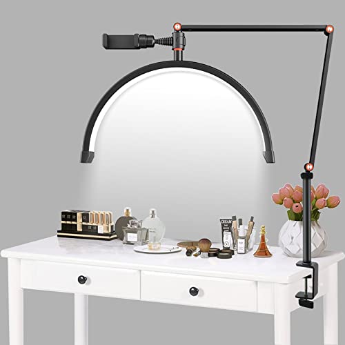 Fancemot Desk Lash Light, Lash Light for Eyelash Extensions, Adjustable Brightness Half Moon Lamp, Adjustable Height Lash Lamp for Eyelash Extensions, Eyelash Light for Tattoo Artists, Nail Tech, 16in