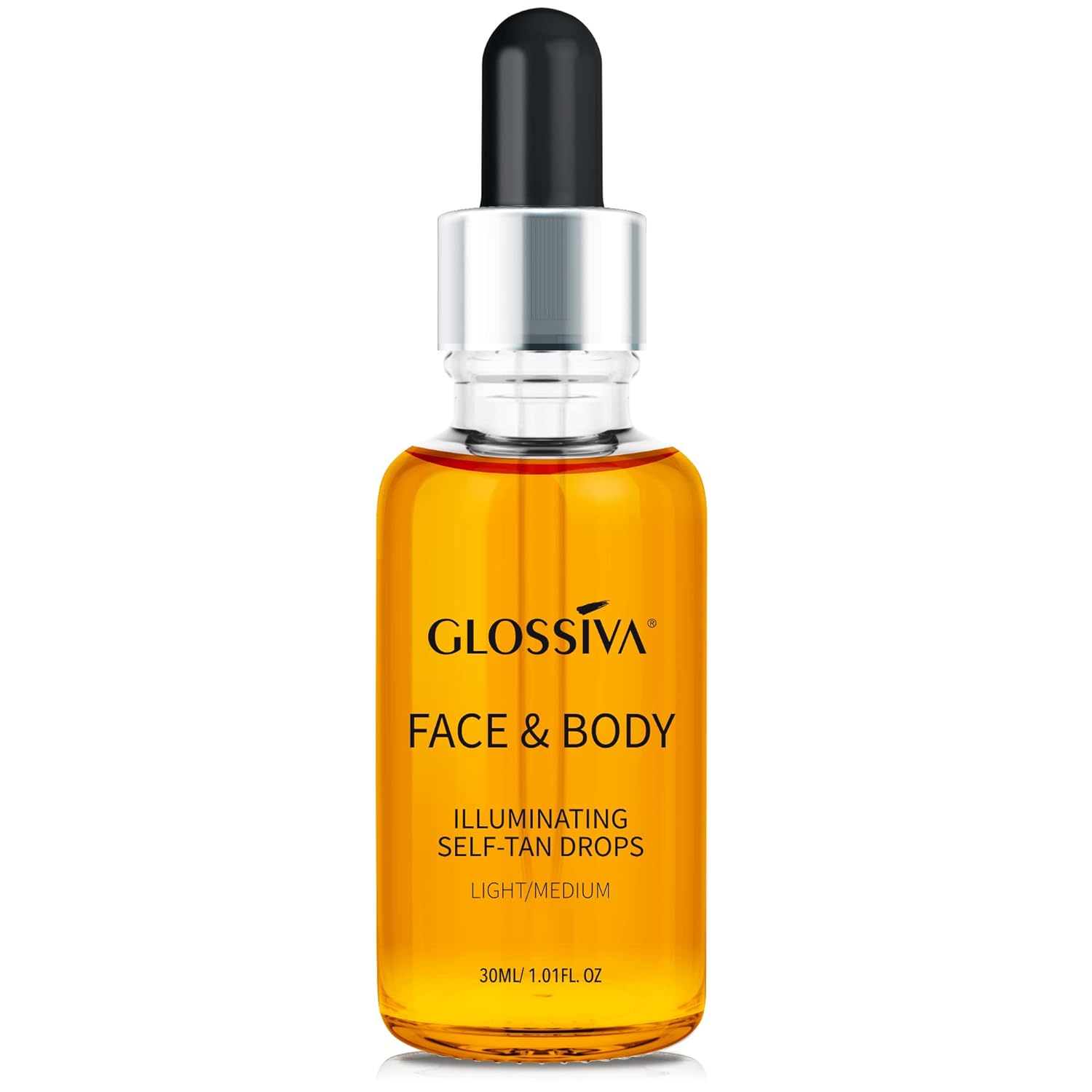 Glossiva Self Tanner drops for Face and Body,30ml Natural Sunless Tanning for Perfect Golden Glow - Vegan, Friendly & Cruelty Free
