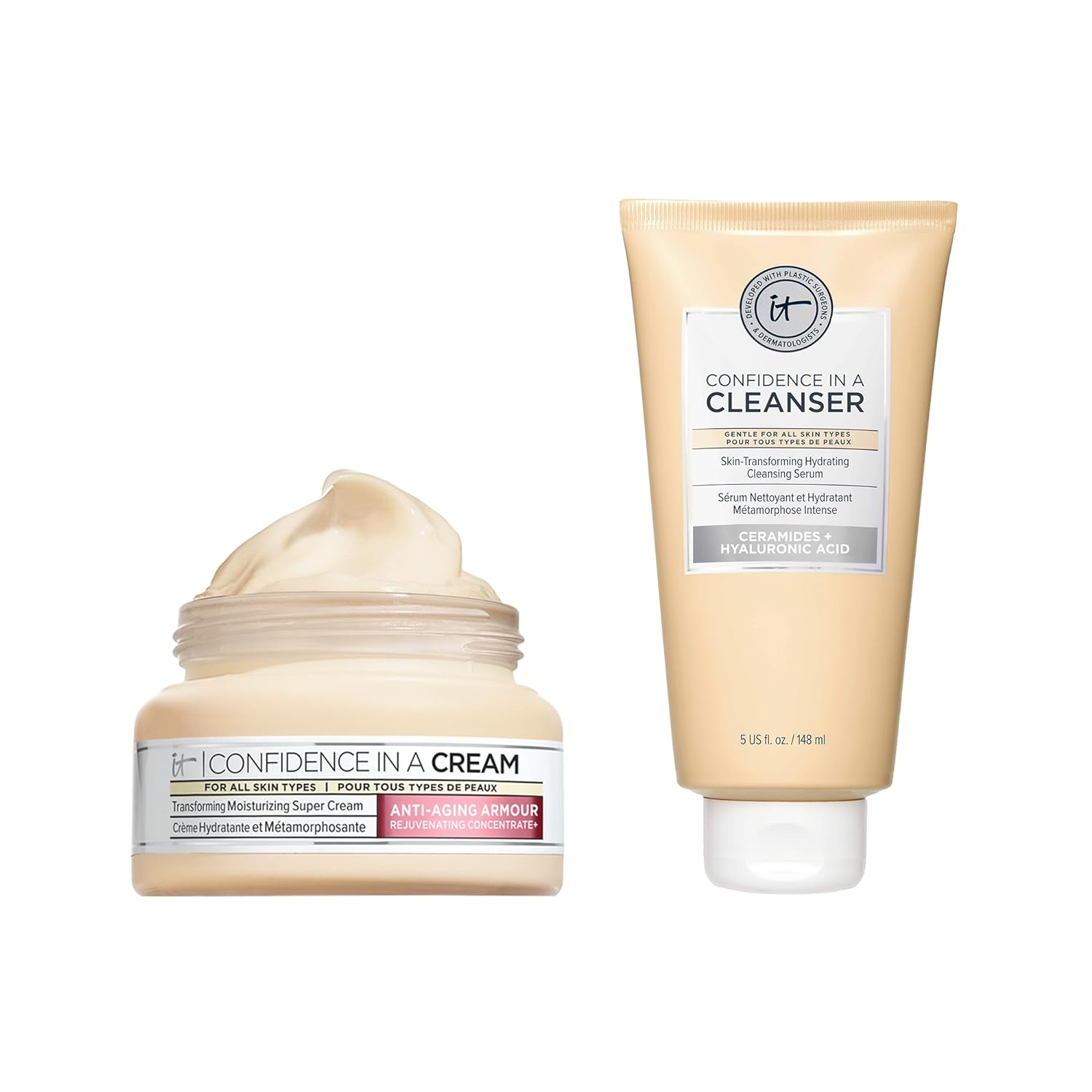 IT Cosmetics Daily Confidence Skincare Bundle Ð Hydrating Facial Cleanser + Anti-Aging Moisturizer Ð Includes Confidence in a Cream 2 Oz + Confidence in a Cleanser 5 Oz Ð Gift for All Skin Types