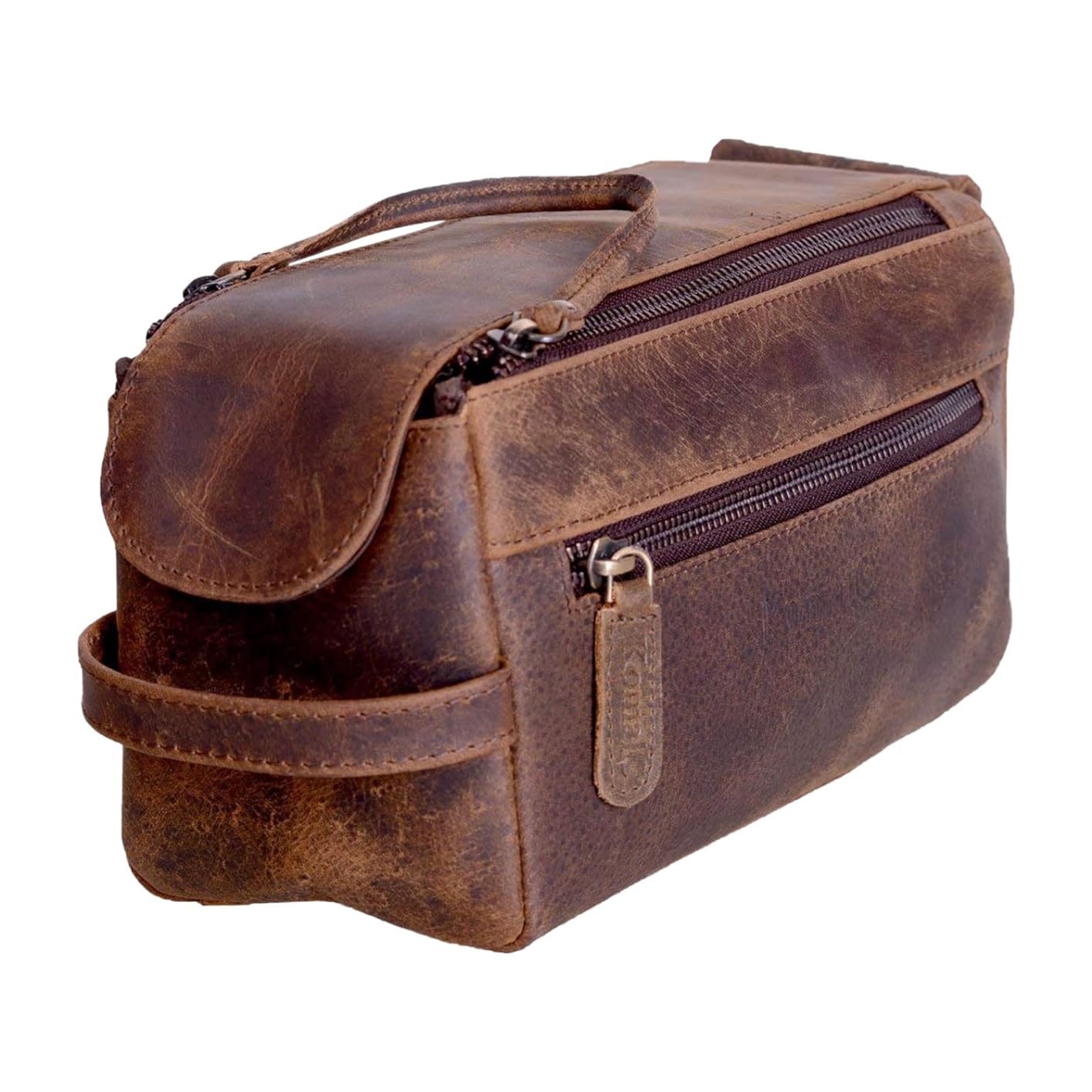 KOMALC Premium Buffalo Leather Unisex Toiletry Bag Travel Dopp Kit