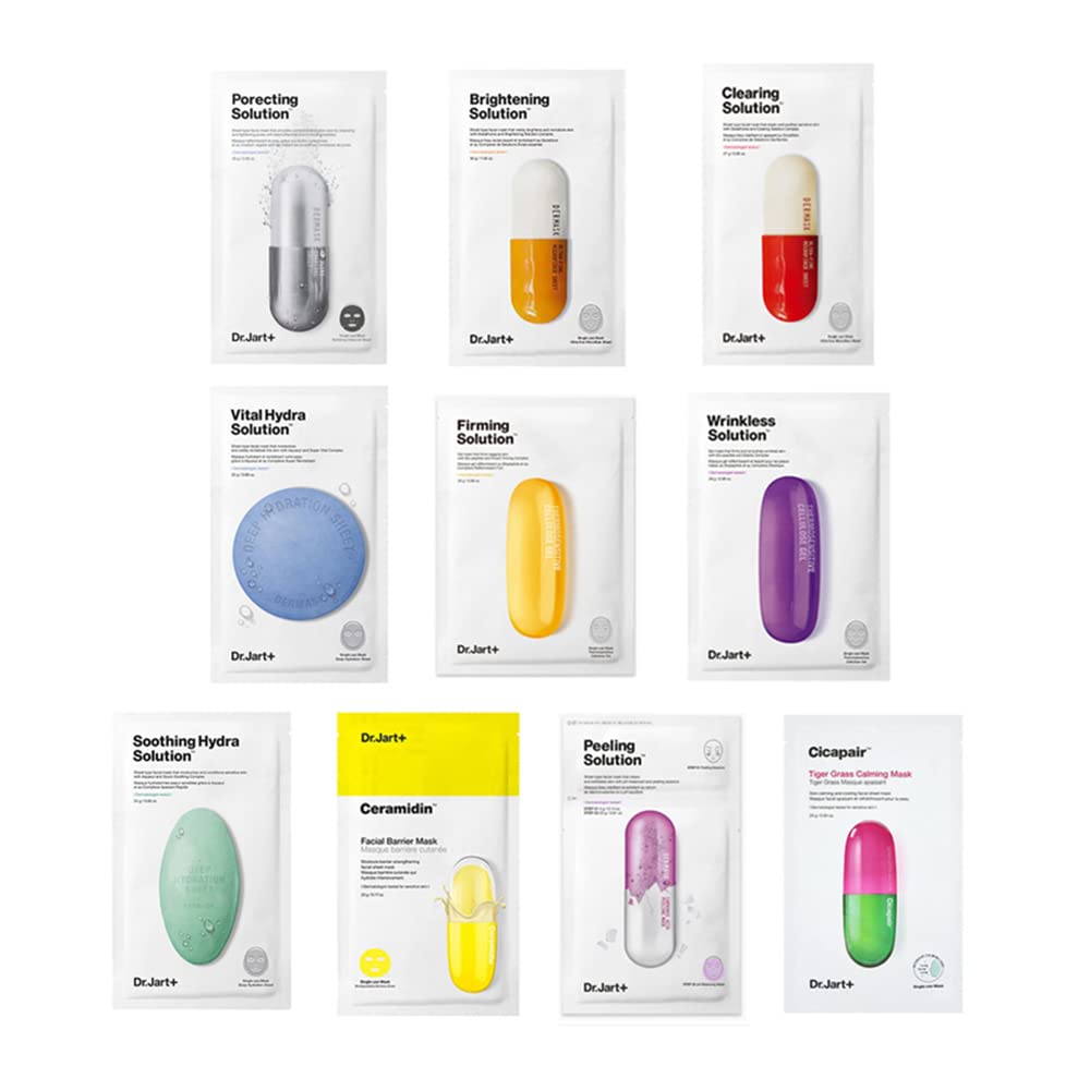 KOSBEAUTY Dr. Jart Mask Sheet Set 7 Pcs Random(Brightening, Ceramidin, Clearing, Firming, Peeling, Porecting, Soothing, Tiger Calming, Vital Hydra, Wrinkle), Skincare, Facial care