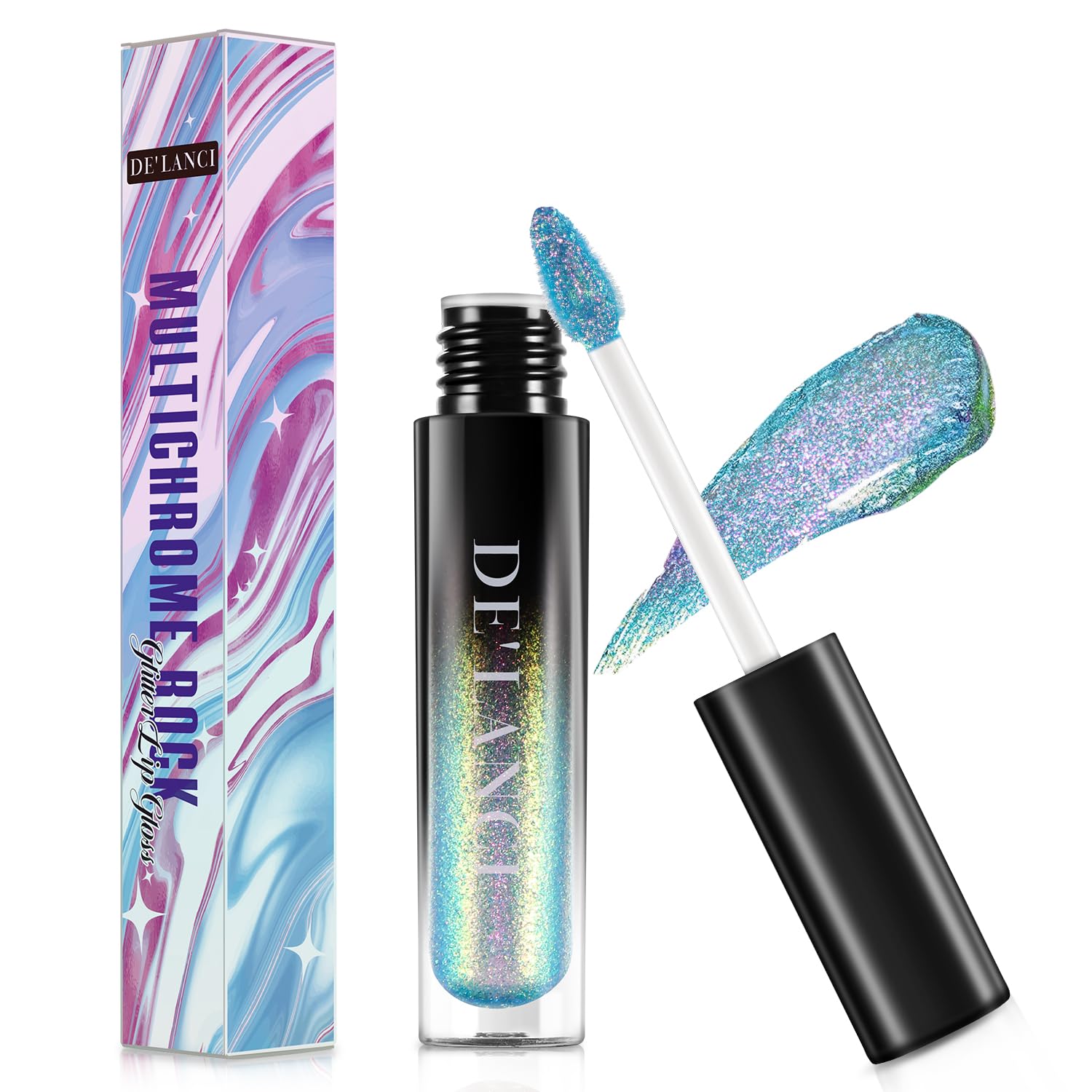 La Catrina Chameleon Liquid Lipstick, Oil-based Diamond Shiny Glitter Lip Gloss, Sparkly Metallic Color Intense Shimmery Finish, Long wears, Holographic Talc Free (#04 Light Green Pink)