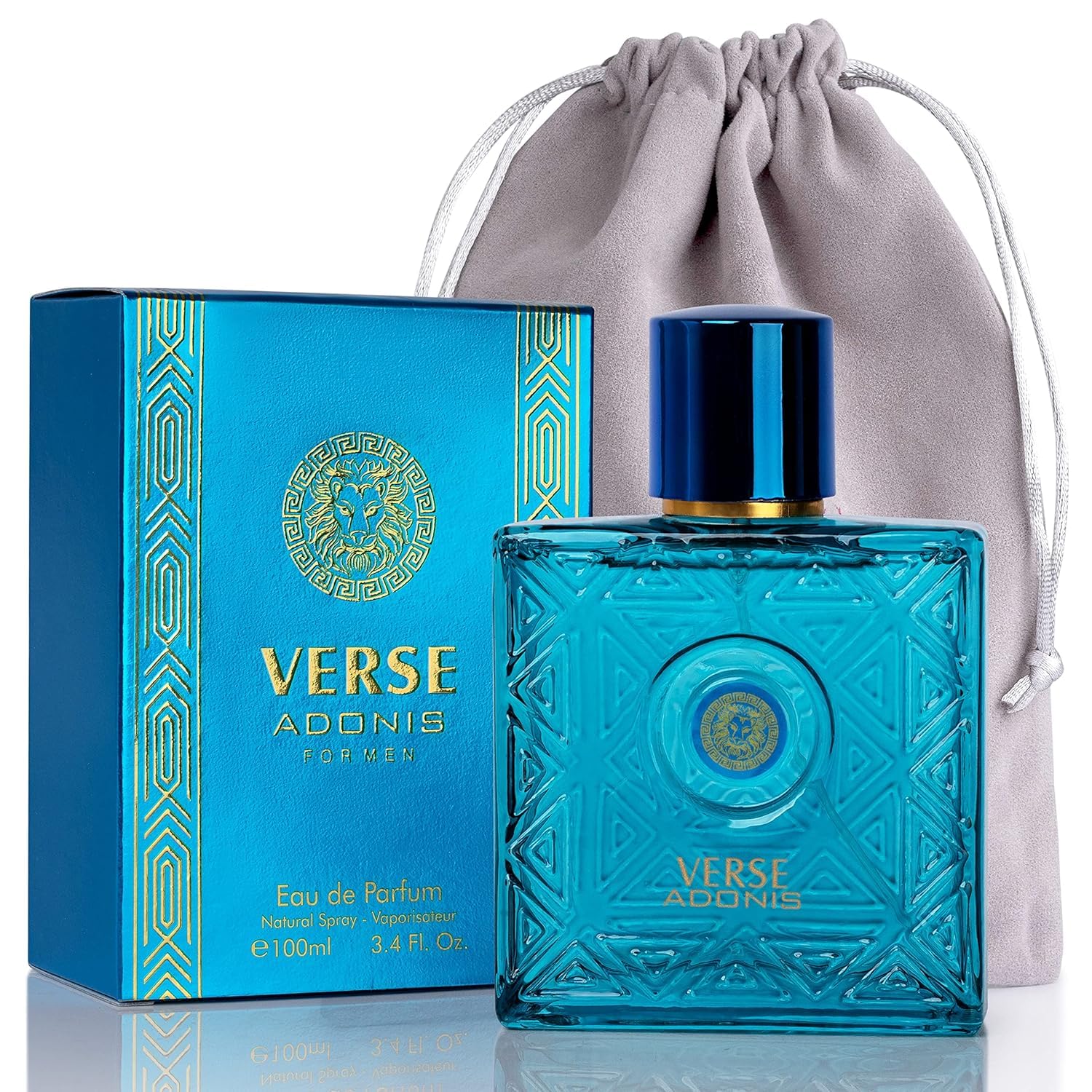 NovoGlow Verse Adonis for Men 3.4 Fl. Oz. 100ml Men's Perfume Carrying Pouch Refreshing Combination of Woody Floral & Fruity Scents - Masculine Scent Lasts All Day A Gift for Any Occasion