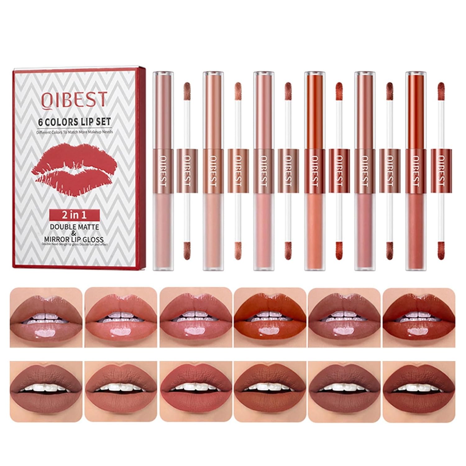 2 in 1 Double-end Lip Gloss Set, Matte Velvet Liquid Lipstick, Long Lasting Waterproof Glossy Lip Glaze