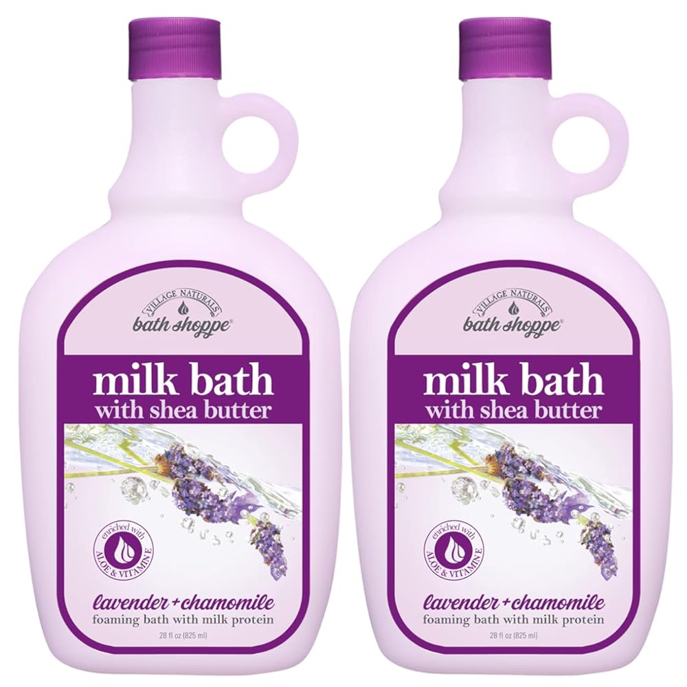 Village Naturals Bath Shoppe Moisturizing Lavender Chamomile Milk Bath - Hydrates Skin - Made With Shea Butter and Vitamin E (Pack of 2 Bottles, 28 fl oz Each)